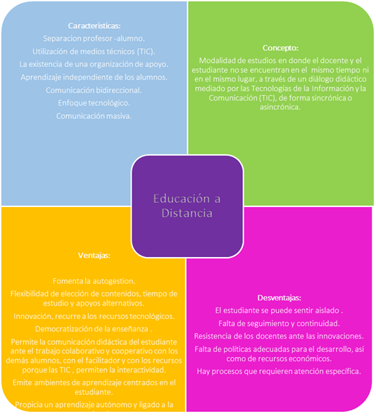 La educación a distancia se enfoca en un encuentro o convergencia entre el aprendizaje tradicional y los nuevos modelos educativos basado en uso de las TIC, en donde se espera que sea el estudiante quien redescubra a través de diferentes experiencias que puede gestionar su propio conocimiento generando en este, el ánimo del aprendizaje, a fin de enfrentar los crecientes problemas sociales y económicos.